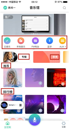 搜歌點歌更方便。新版app對可供選擇的音源采取集中展示,各大分類清晰直觀,語音搜歌、手動搜歌、面板選歌,極速搞定!