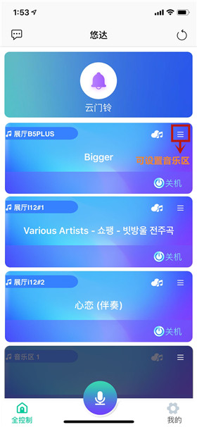 音樂通道輕松切換。在聯網狀態下,打開app主界面就會顯示當前可播放的音樂通道,每個通道名稱可自定義,而且在不跳轉界面的情況下,還可實現對各通道的集中控制。