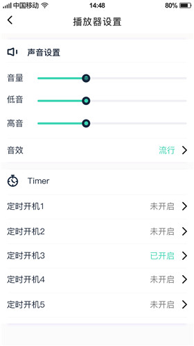 播放器設置中,聲音、音效、定時等功能一應俱全,無需來回跳轉,一鍵設置。