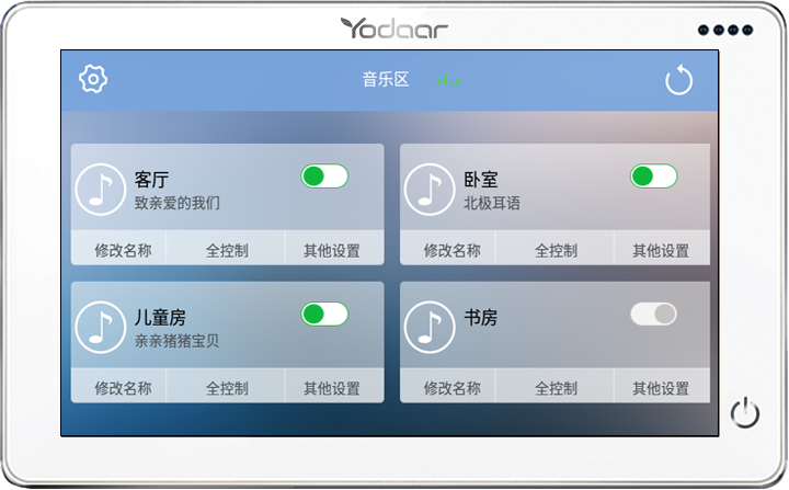 (支持獨立控制不同房間的開關(guān)及音樂選擇)