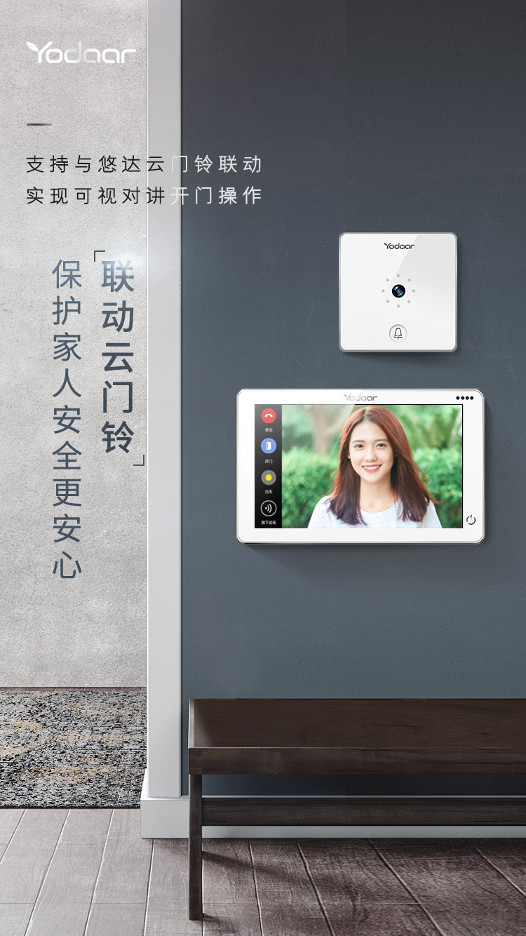 中控屏還可支持與悠達云門鈴聯(lián)動,有客來訪,可在第一時間送達每個房間,并支持可視對講,實時知曉訪客情況。老人孩子在家,同樣可以利用悠達app遠程了解來訪情況,更好地保護家人安全。
