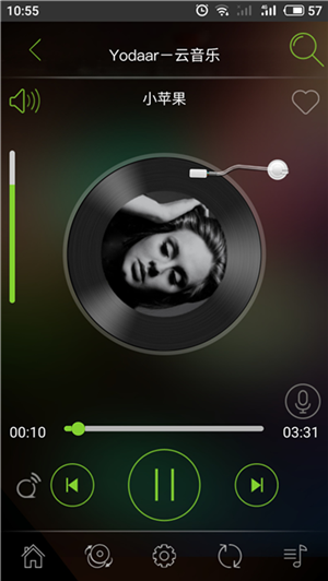 打開軟件后點(diǎn)擊音樂,就可以通過手機(jī)進(jìn)行各項操作。除了顯示方式有所差別外,手機(jī)界面中所有的音樂與設(shè)置和控制面板完全一樣,可以設(shè)置播放器模式、選擇不同的音源接入、在線搜歌選歌……不要太好用~