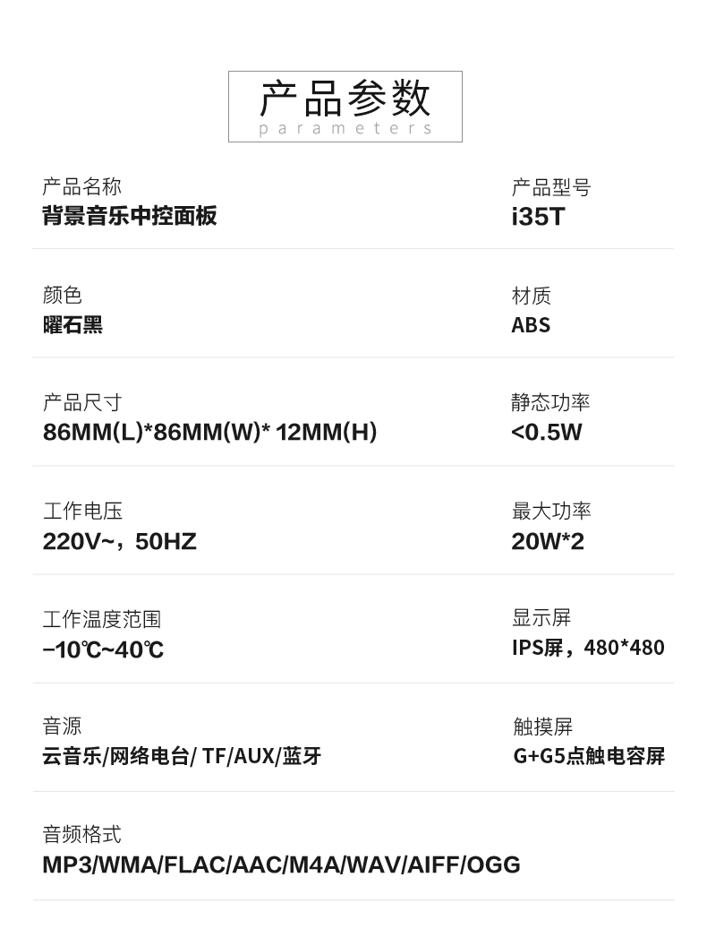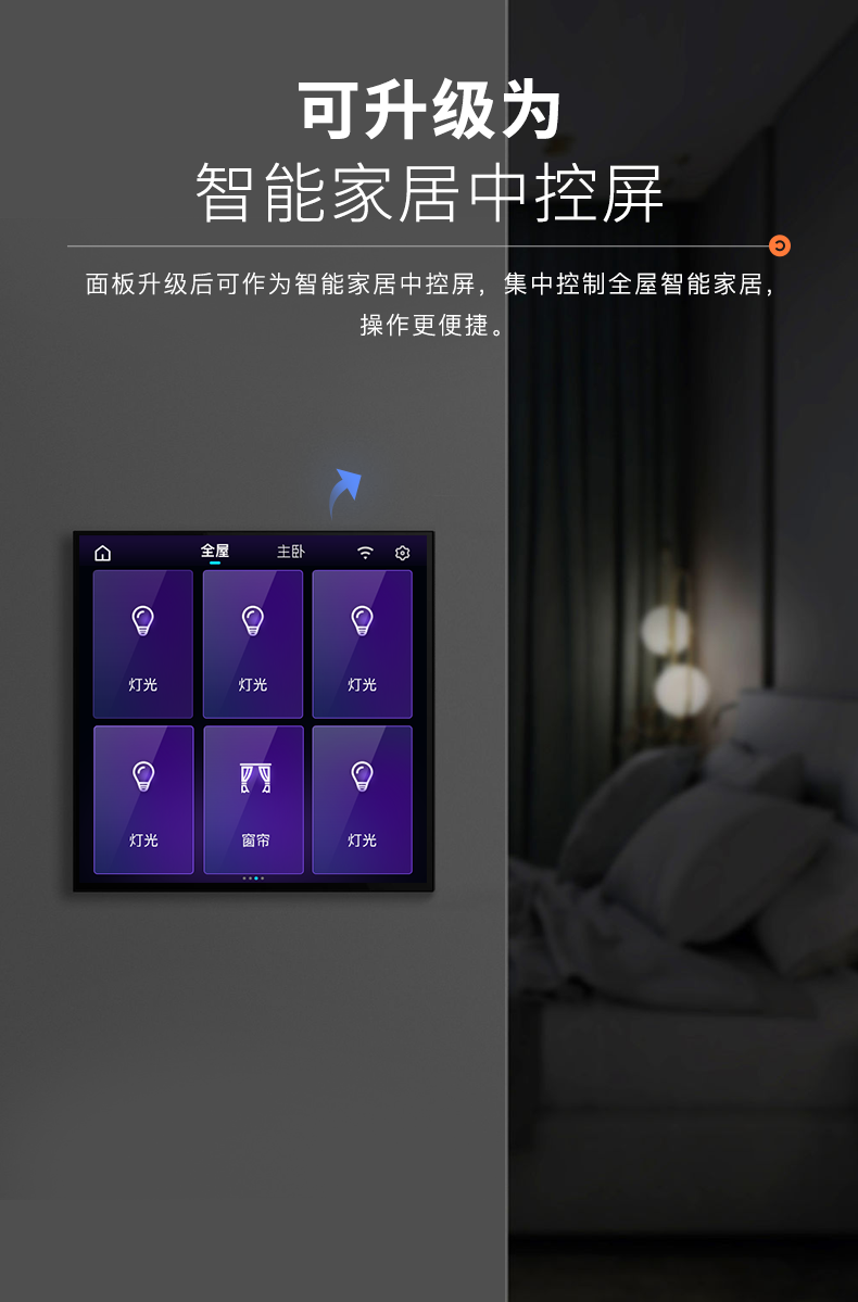 4吋中央機控制面板采用全面屏設計,機身尺寸可與家用開關完美融合,搭配曜石黑的外框,低調而有品味。