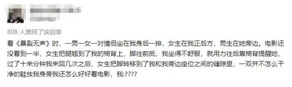 而除了這些隱患,電影院作為公共場所,大家總能在其中看到各種奇葩操作,很多網友就分享了那些年在觀影過程中的“難忘”記憶。